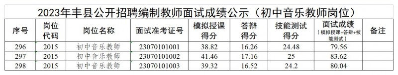现将2023年丰县公开招聘编制教师面试成绩公示如下: