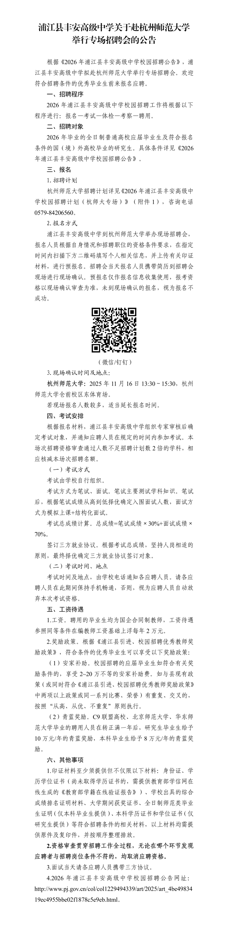 1.2026年浦江县丰安高级中学校园招聘计划(杭师大专场).xlsx