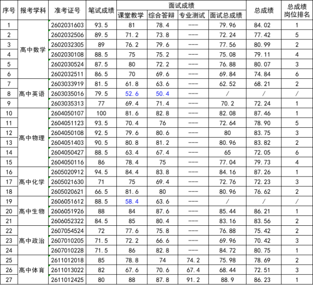 根据《南京市教育系统部分事业单位 2025 年11月公开招聘教师公告》(宁事招公告(R)〔2025〕22 号)文件精神,经南京市秦淮区人社局和教育局监督指导,我校2025年11月公开招聘教师的面试工作已于12月21日结束。现将参加我校面试的应聘人员成绩公告如下: