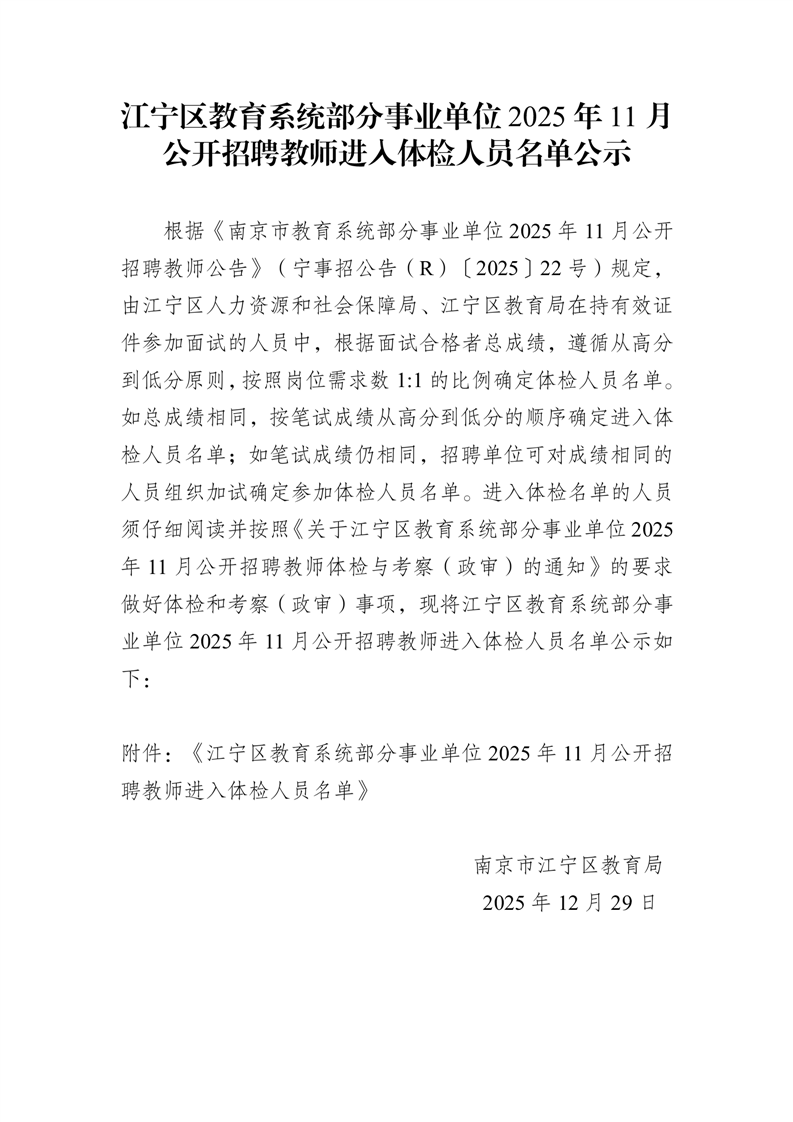 附件:江宁区教育系统部分事业单位2025年11月公开招聘教师进入体检人员名单.pdf